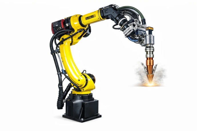 Robot-mounted laser cladding cells for flexible, multi-axis metal deposition.